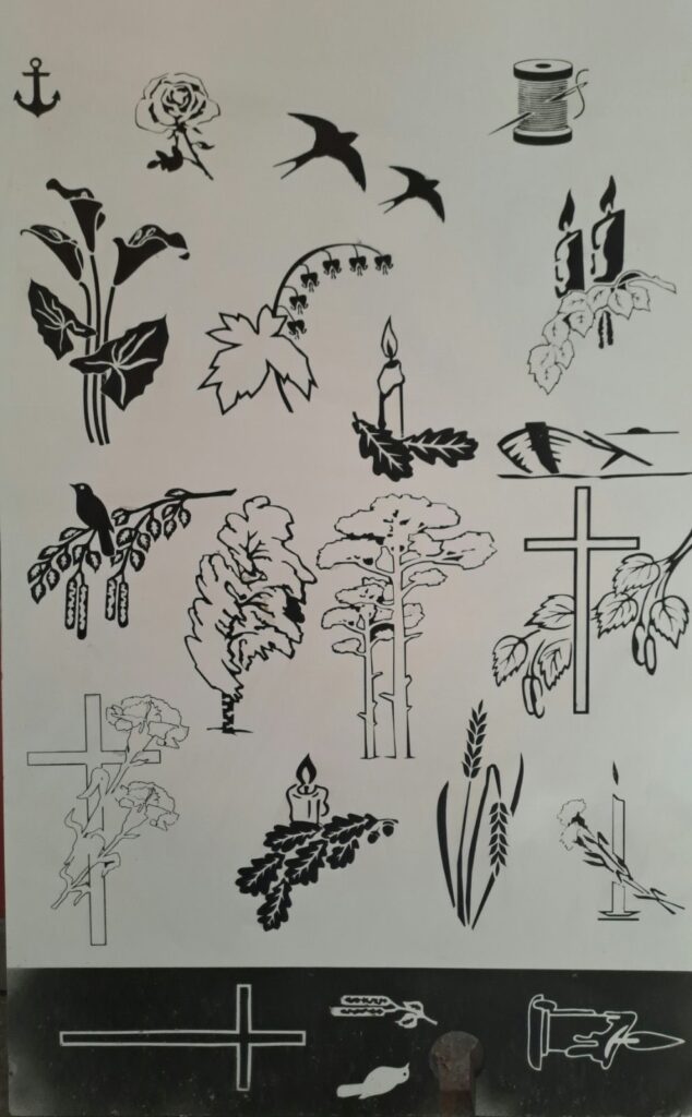 Tehtud tööde piltidelt saate valida sobiliku kavandi hauaplaadi tellimiseks.